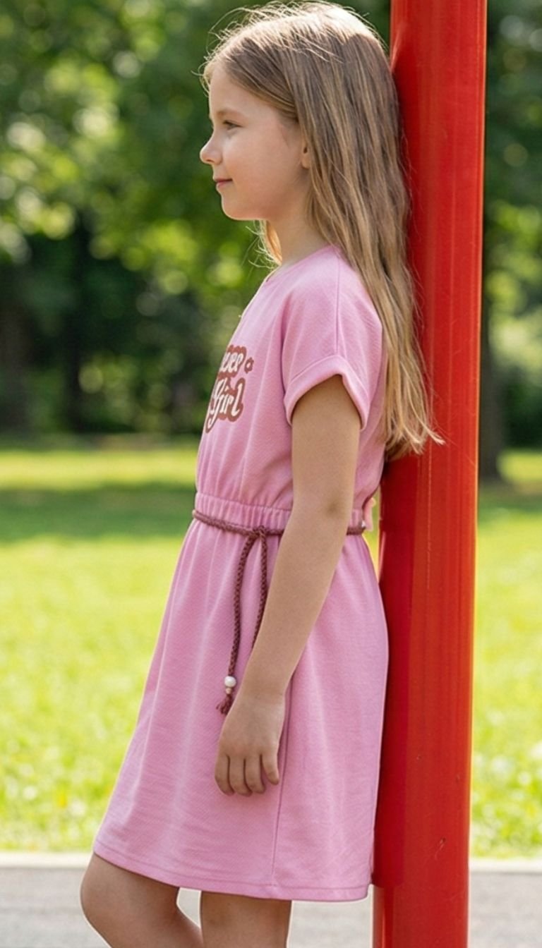 Soft, breathable, and made from premium cotton popcorn knitted jersey fabric, this pink t-shirt dress pairs cozy comfort with carefree charm. The relaxed-fit top, flowy dolman (batwing) sleeves, and easy A-line skirt let her move, twirl, and play in total comfort. The gentle pink tone adds a playful yet calming vibe, making it ideal for any season—bright summer days, spring picnics, or cozy layered autumn looks.