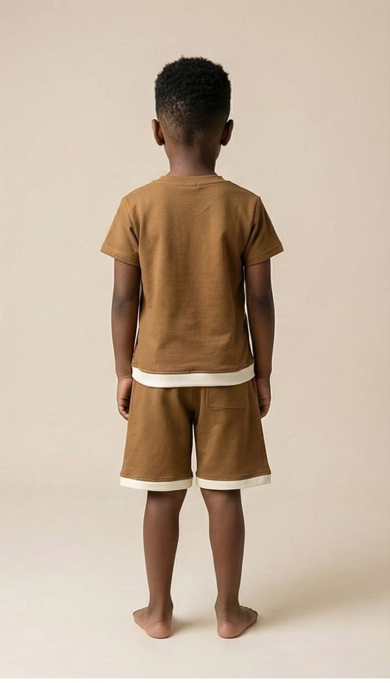 Earthy Camel Graphic T-Shirt & Shorts Co-ord Set for Kids