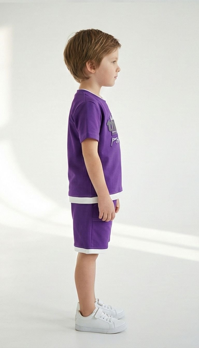 Rich Purple Graphic T-Shirt & Shorts Co-ord Set for Kids