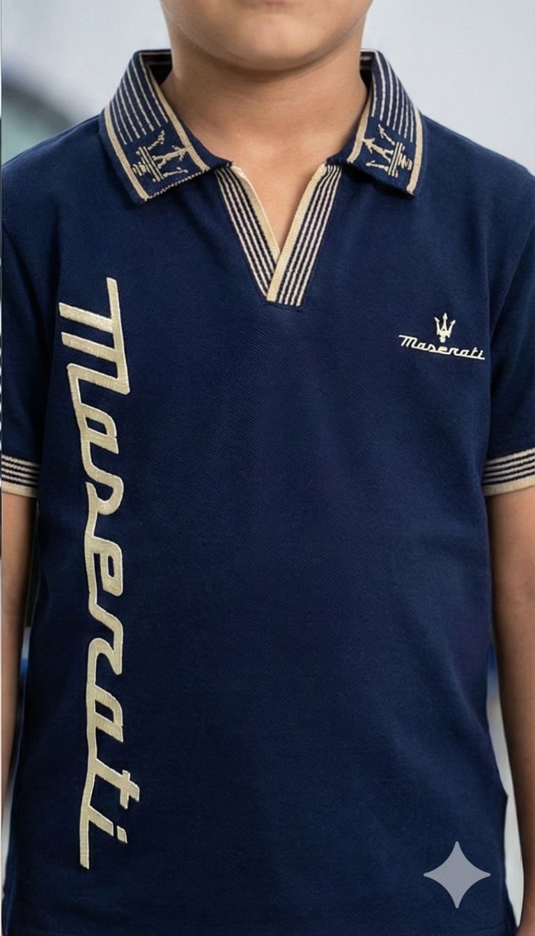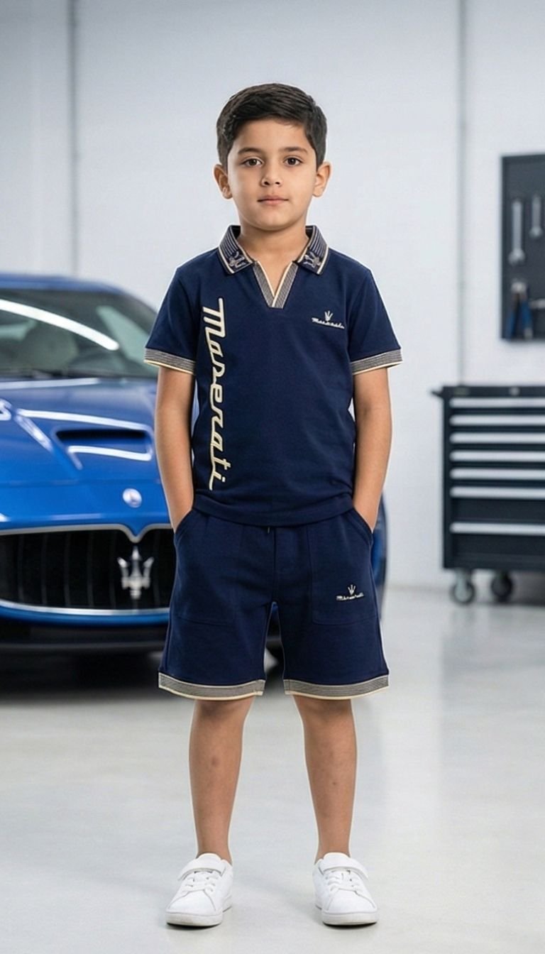 Elevate his wardrobe with the “Supercar Series” Premium Polo & Shorts Set in a sleek navy shade channeling Maserati’s timeless luxury. This 2-piece set captures the refined elegance of Italian supercars through classic branding and subtle graphics, all in a versatile navy perfect for the young racing fan. The coordinated polo and shorts create an instant classy look ideal for school events or weekend adventures.
